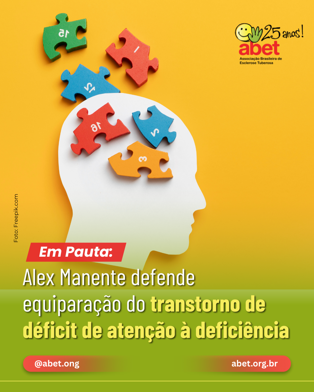 A Associação Brasileira de Esclerose Tuberosa (ABET) comunica aos seguidores que, a pauta que defende a equiparação do Transtorno do Déficit de Atenção com Hiperatividade (TDAH) à deficiência, segue em discussão na Câmara dos Deputados, em Brasília.